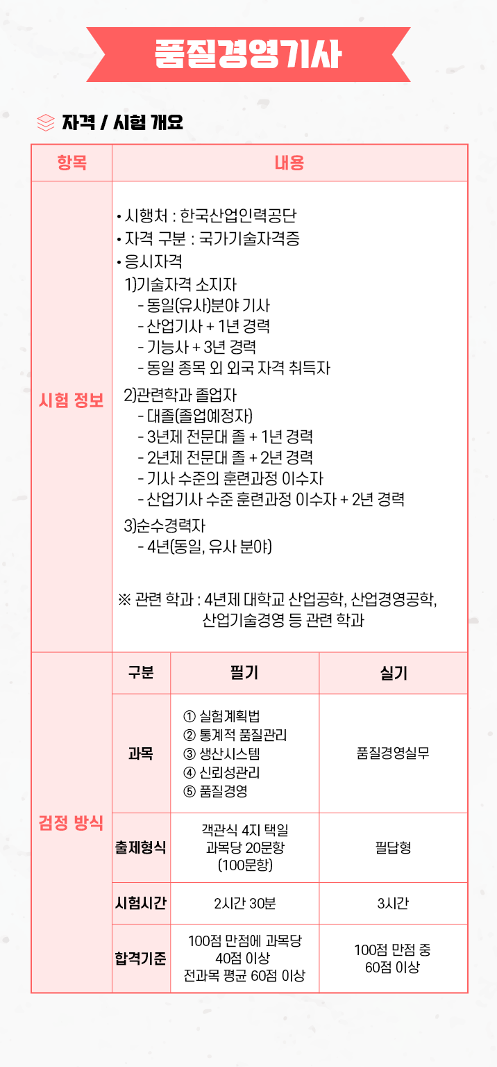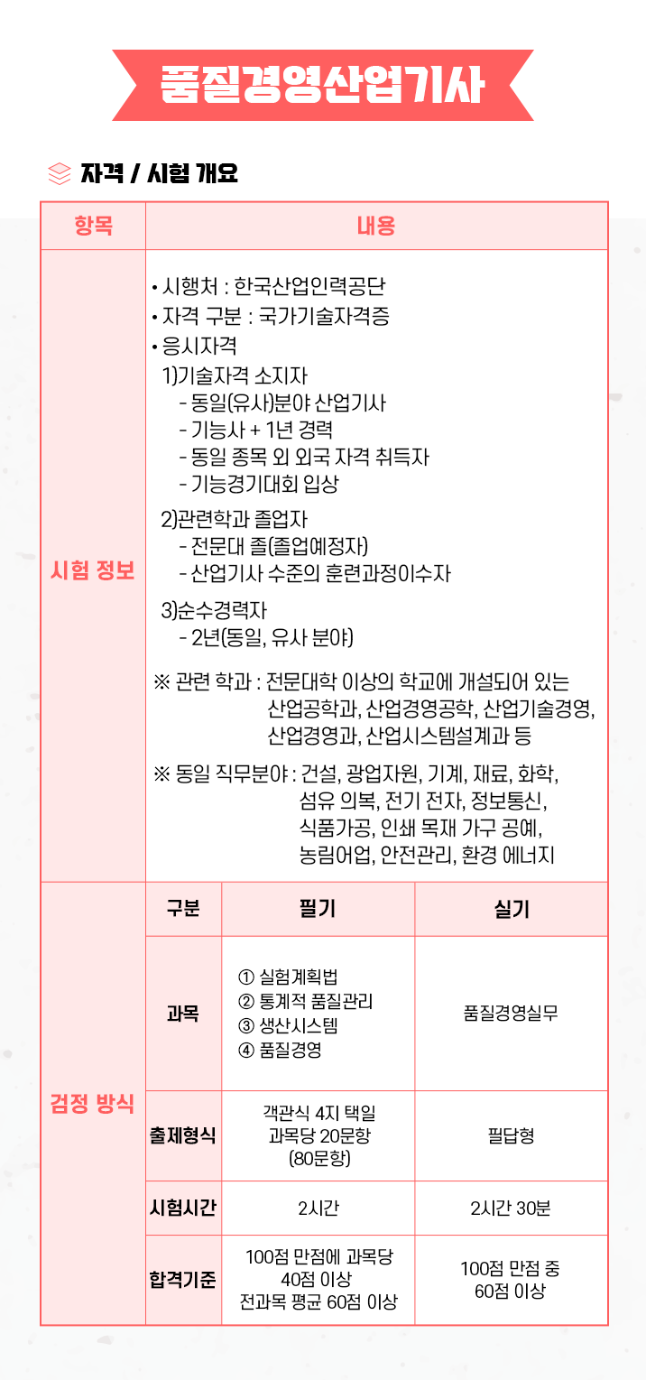 [품질경영산업기사] 품질경영기사 자격요건 및 시험개요