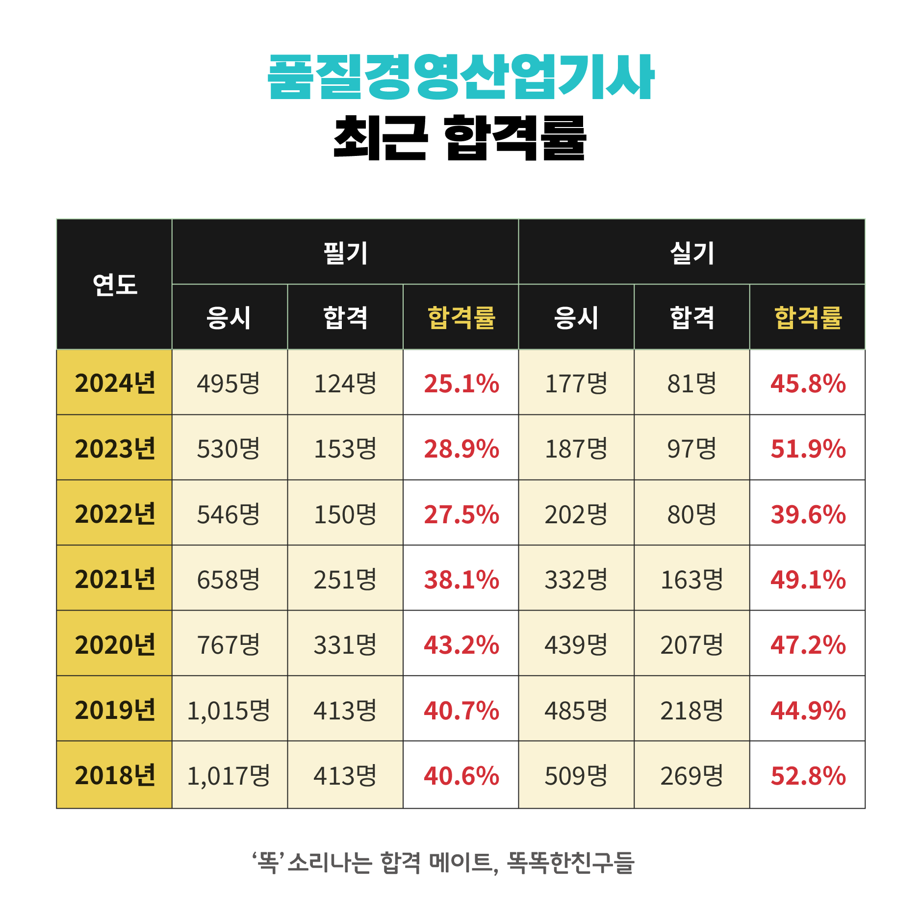 [품질경영산업기사] 최근 7년간 시험 합격률